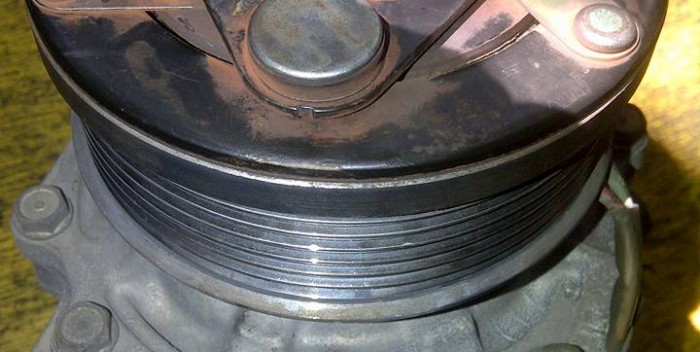 Ada beberapa pengguna mobil yang senang mengemudikan mobil dengan kecepatan tinggi mengeluhkan bau sangit atau bahkan menyengat saat AC di on kan , kok bisa begitu ? Sangat mungkin terjadi hal ini manakala kemagnetan dicompressor sudah mulai berkurang sehingga pressure plate (kopling compressor ) selip pada putaran RPM mesin tinggi . AC mobil pada riwayat perjalanan pemakaian akan mengalami proses on / off mengikuti setting temperatur suhu ruangan ( saat dingin kompresor mati dan akan hidup kembali pada suhu tinggi ) . Nah pada kondisi inilah yang dikawatirkan jikalau kemagnetan tidak sempurna . Putaran mesin tinggi compressor on . Akibat yang ditimbulkan adalah terjadinya bunga api disekitar pulley compressor hingga menimbulkan panas yang berlebih dan merambat ke stator magnet . Kemudian membakar lapisan email kawat tembaga di magnet stator sehingga bau sangit . Kalau sudah begini jalan keluarnya hanya ganti magnetich clutch ( kalau mungkin ada ) atau ganti compressor unit.